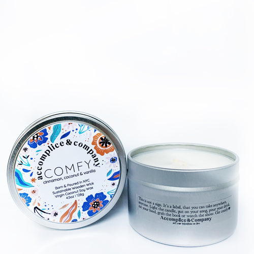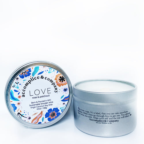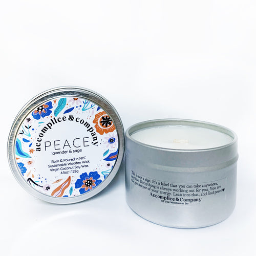Our travel tins focus on six different intentions. Hand poured with an essential oil + fragrance oil blend. We only use Virgin Coconut Soy Wax + Eco-friendly, sustainable wooden wicks derived from Sappy Fruit Trees. Vegan, non-toxic + free from phthalates, carcinogens, reproductive toxins, and other potentially hazardous chemicals.
